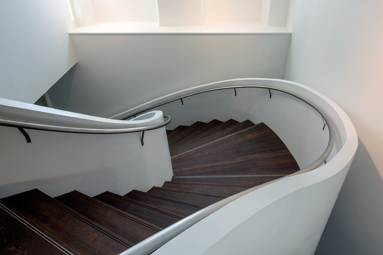 Escalera de acero para la nueva sede del Ministerio de Asuntos Exteriores de Luxemburgo.