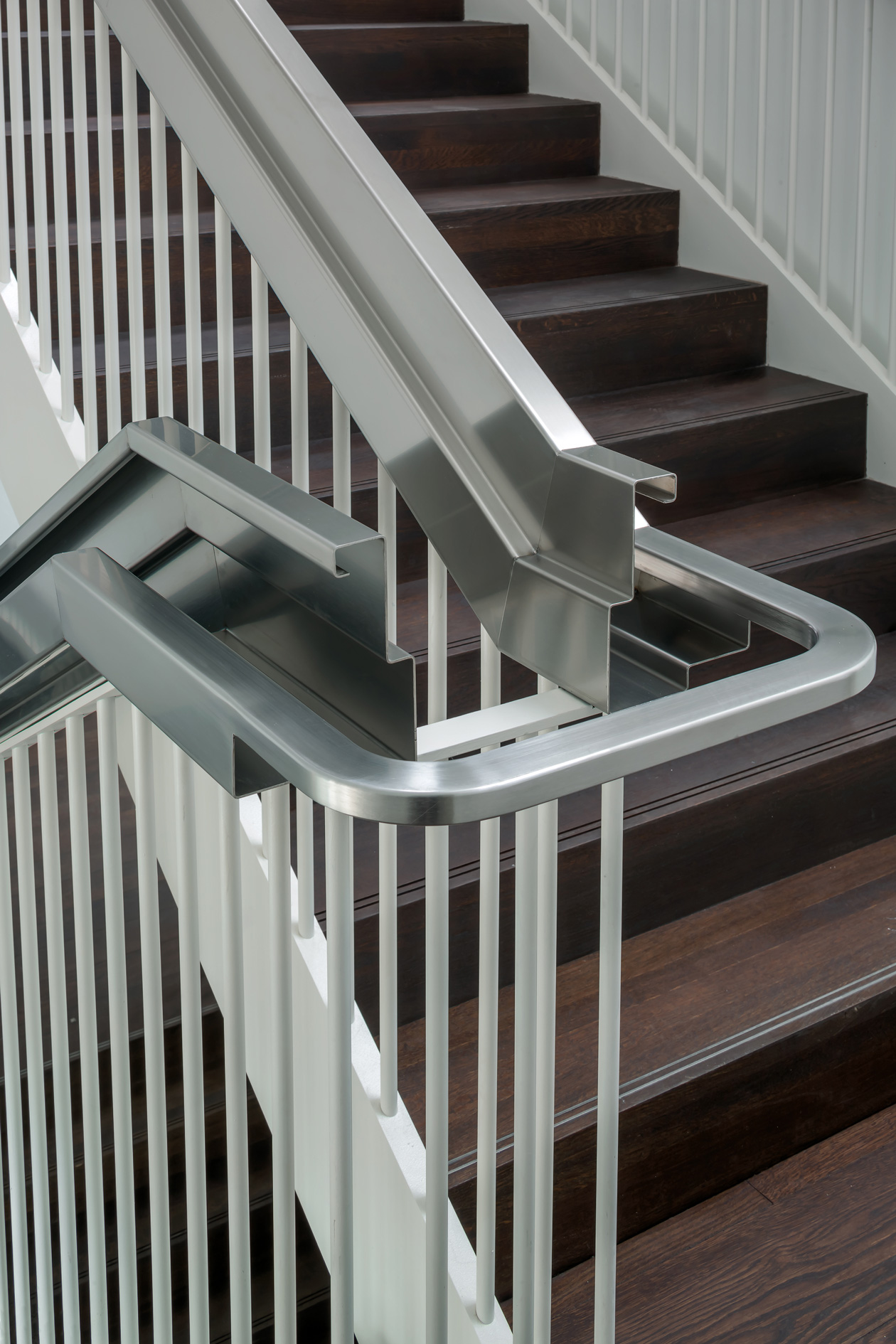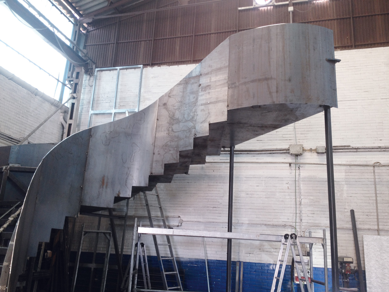La escalera se fabrica completamente en taller y se despieza para su posterior instalación en Luxemburgo con la peculiaridad de que tuvo que ser despiezada en pequeñas partes para poder introducirla en la obra terminada. Incluido todos sus cálculos estructurales y legalizaciones.