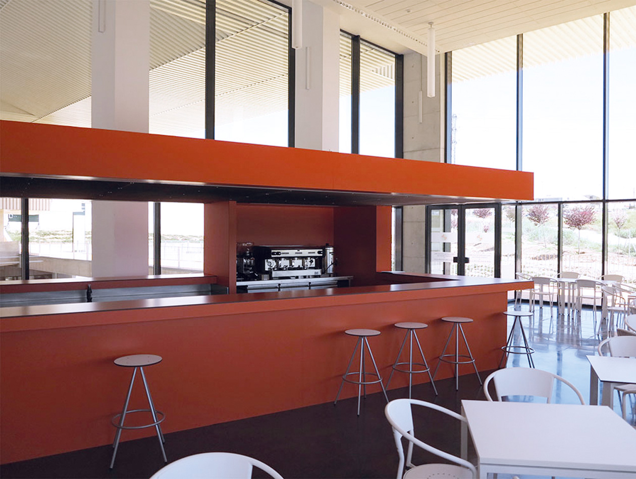 Fabricación y montaje de módulo para cafetería compuestos por estructura tubular galvanizada y paneles de resina fenólica.