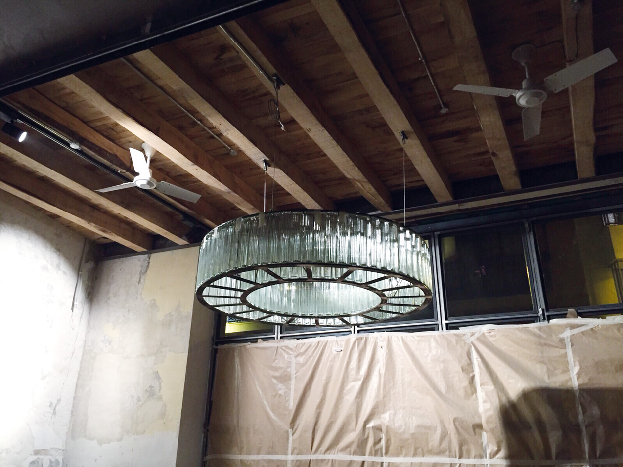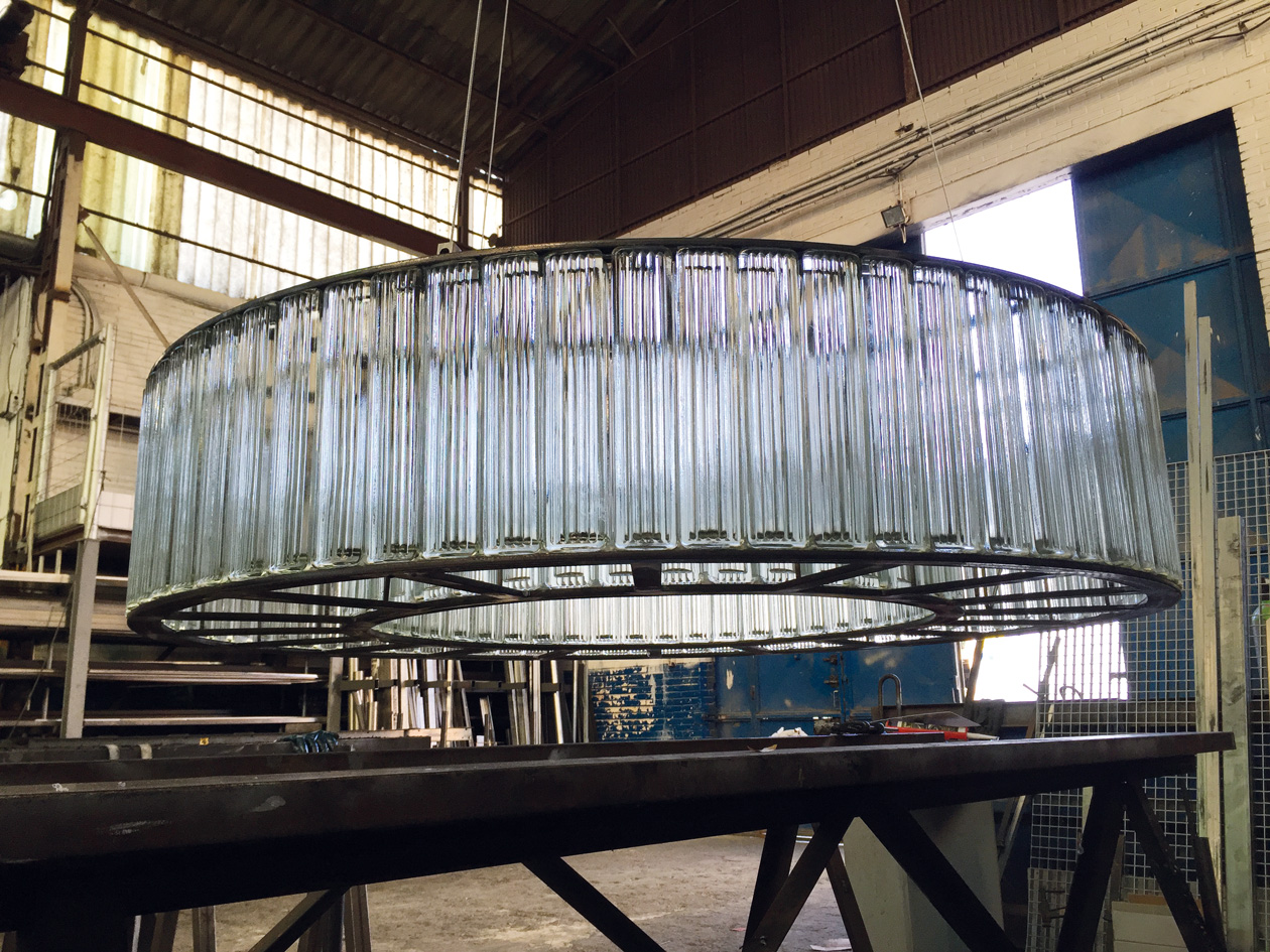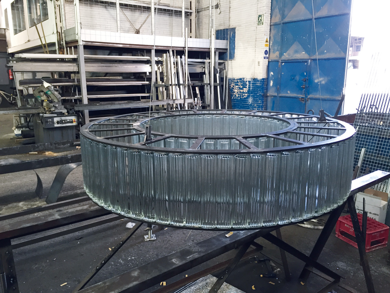 Fabricación de lámpara circular de hierros y vidrios conformados.