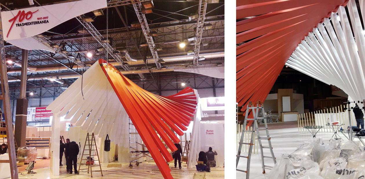 Fabricación y montaje de la estructura central del stand de Trasmediterranea en la feria Fitur 2017.