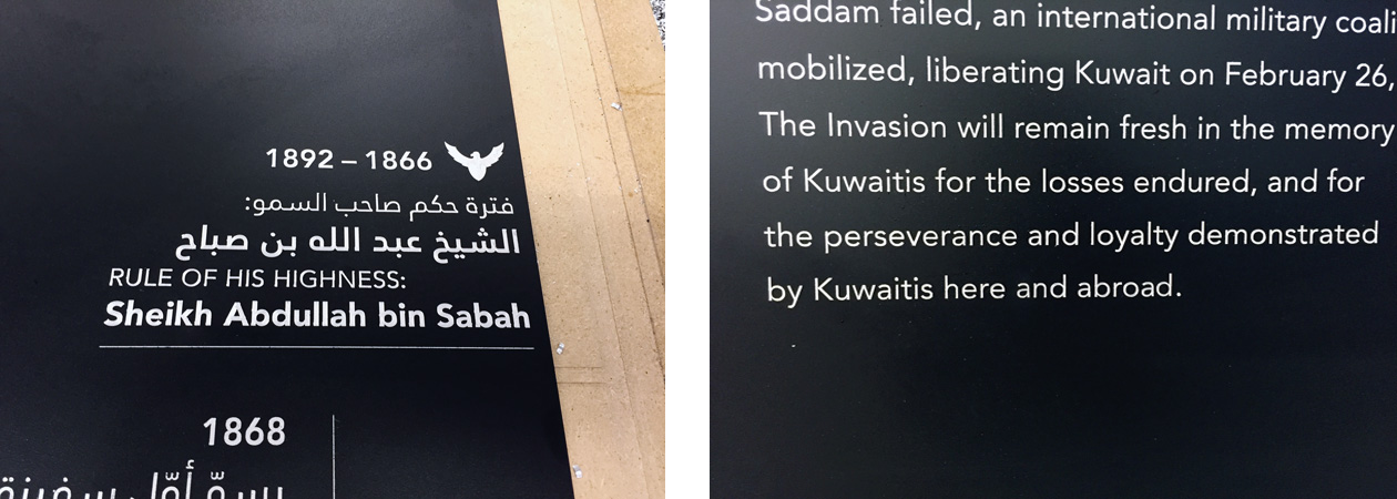 conformando los diferentes paneles gráficos del museo Memorial en el parque de Al-Shaheed