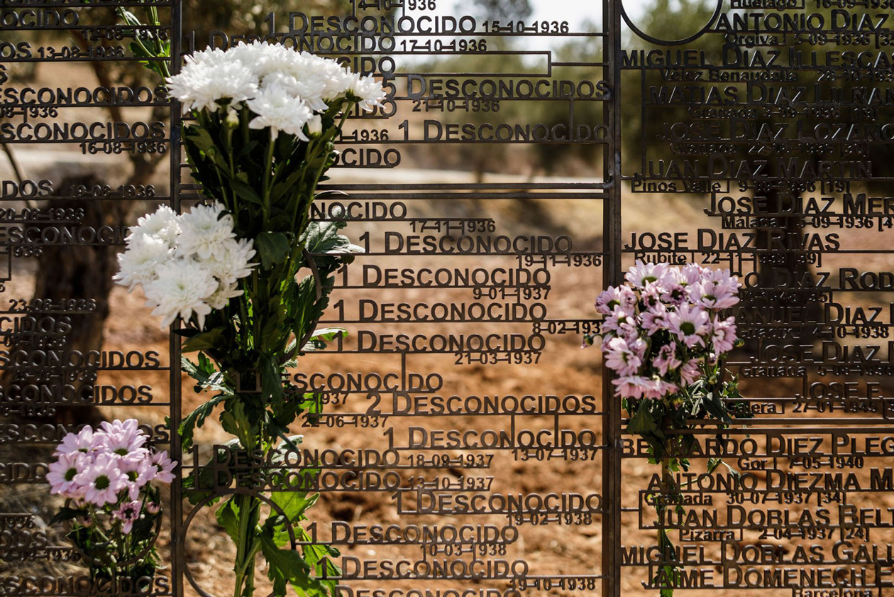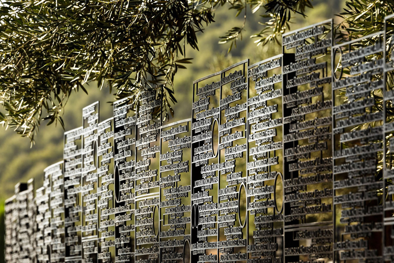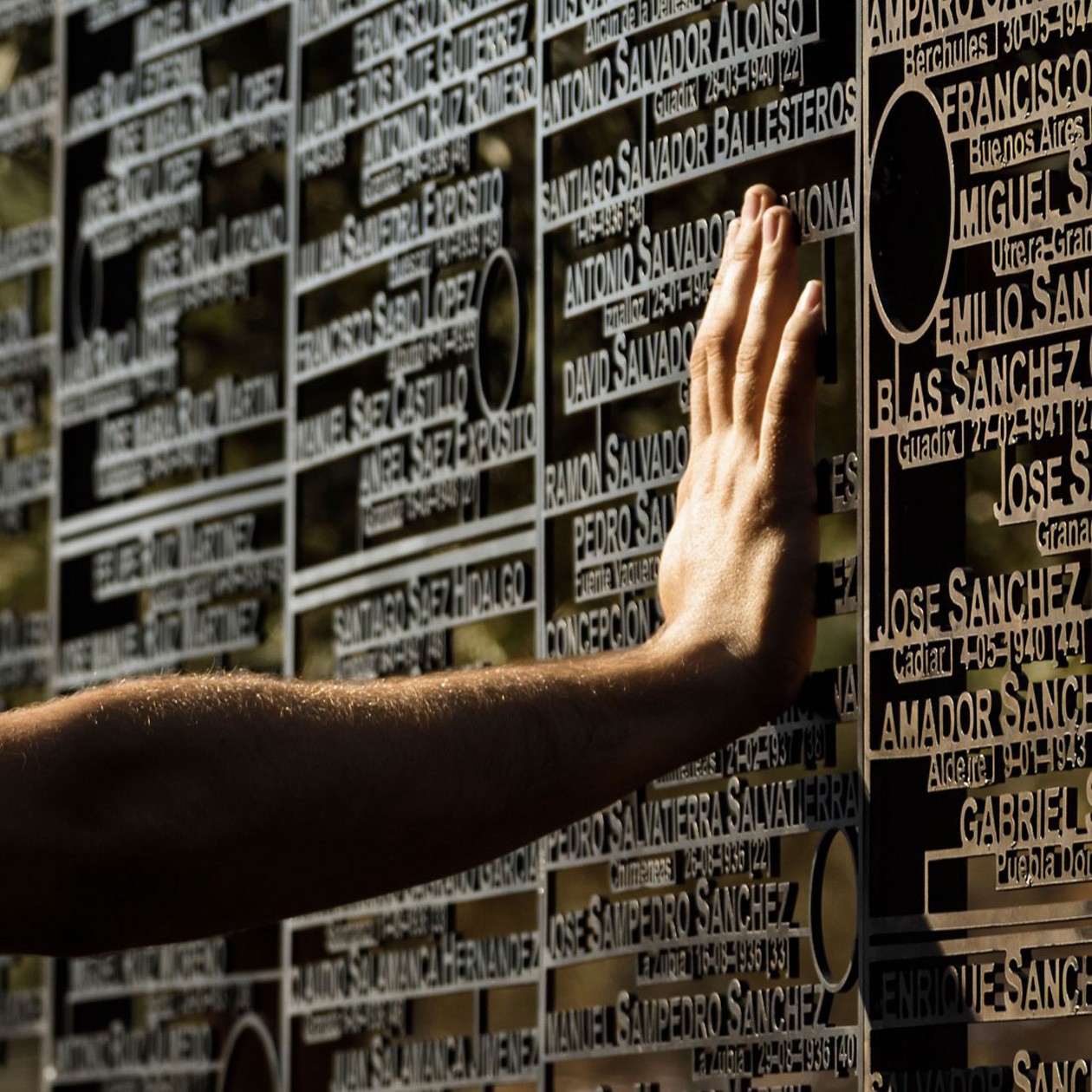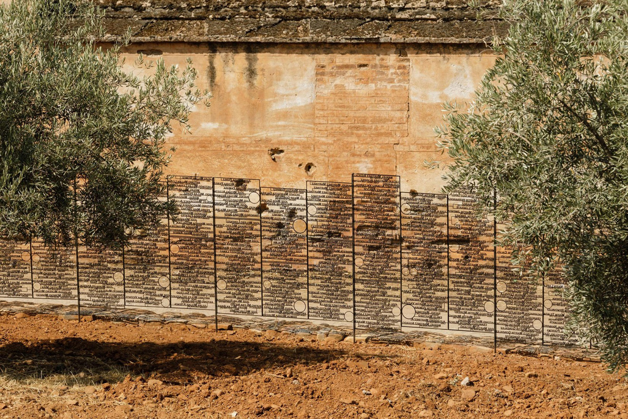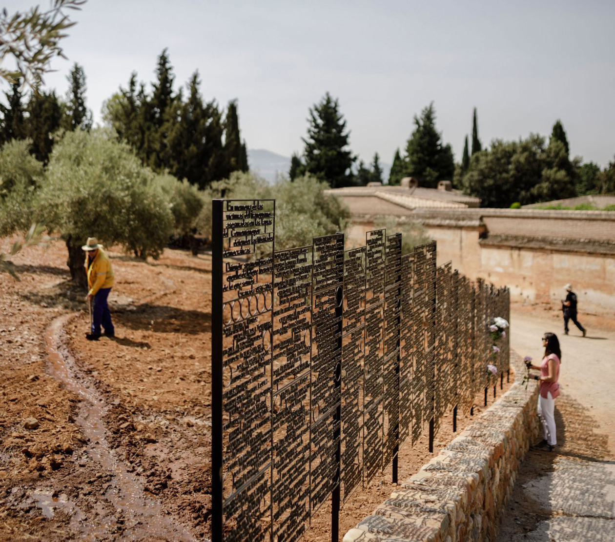 La celosía, es un trabajo de hierro, chapas cortadas por láser, de 43m de longitud, en ella se puede leer nombre, lugar de procedencia, fecha de fallecimiento y edad-, de los fallecidos.