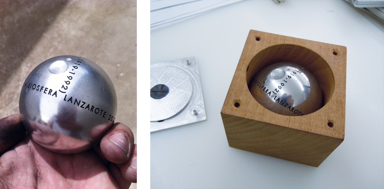 Diseño junto con Javier Haro Greppi y fabricación de elementos para premios de "Referente de la Biosfera" entregados en el Cabildo de Lanzarote.